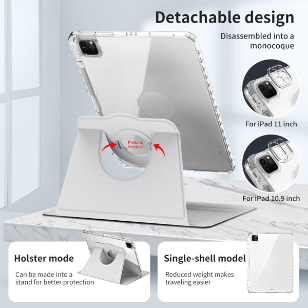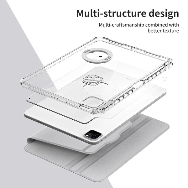 For iPad Air 13 2024 / Pro 12.9 2022 360 Rotation Detachable Clear Acrylic Leather Tablet Case(Grey)