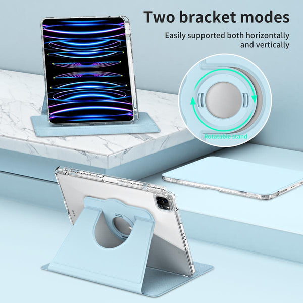 For iPad Air 13 2024 / Pro 12.9 2022 360 Rotation Detachable Clear Acrylic Leather Tablet Case(Ice Blue)