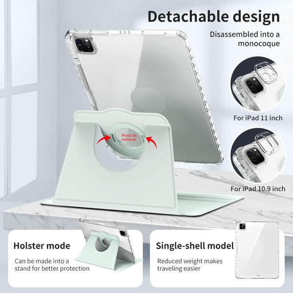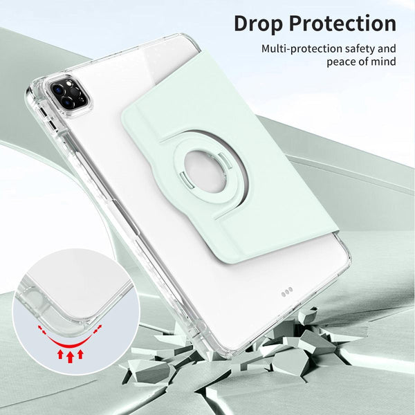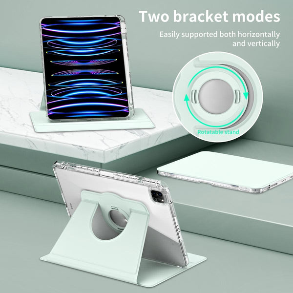 For iPad Air 13 2024 / Pro 12.9 2022 360 Rotation Detachable Clear Acrylic Leather Tablet Case(Light Green)