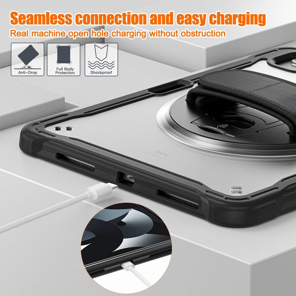 For iPad Air 2022 10.9 / Pro 11 2022 Heavy Duty Hybrid Tablet Case with Handle & Strap(Black)