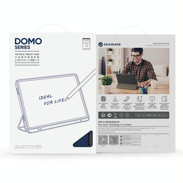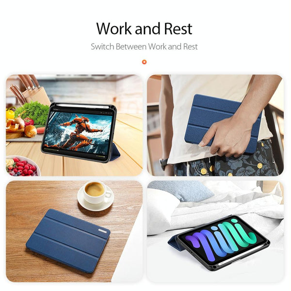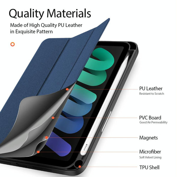For iPad mini 6 DUX DUCIS Domo Series Horizontal Flip Magnetic TPU + PU Leather Tablet Case with Three-folding Holder & Pen Slot(Blue)
