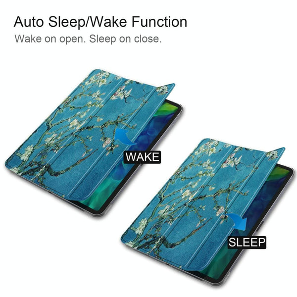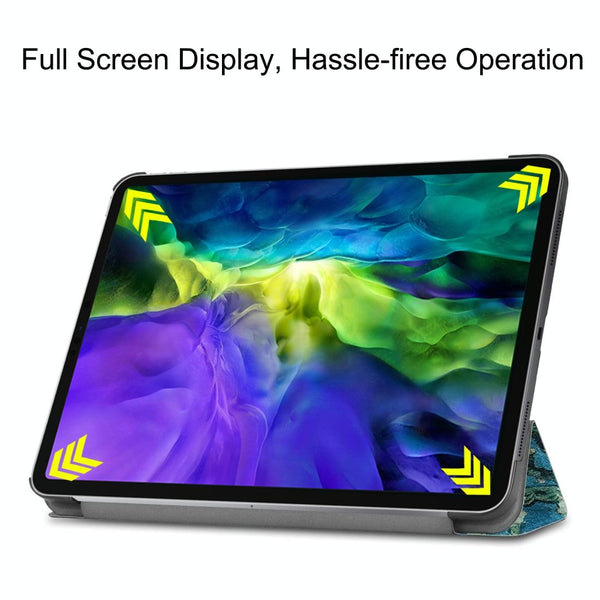 For iPad Pro 11 inch 2020 Custer Painted PU Leather Tablet Case with Sleep / Wake-up Function & 3-Fold Holder(Apricot Blossom)