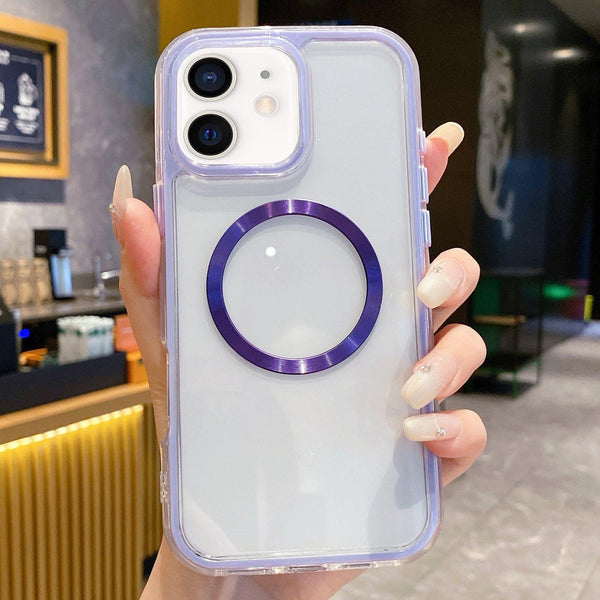 For iPhone 11 3 in 1 Airbag CD Texture MagSafe Phone Case(Taro Purple)