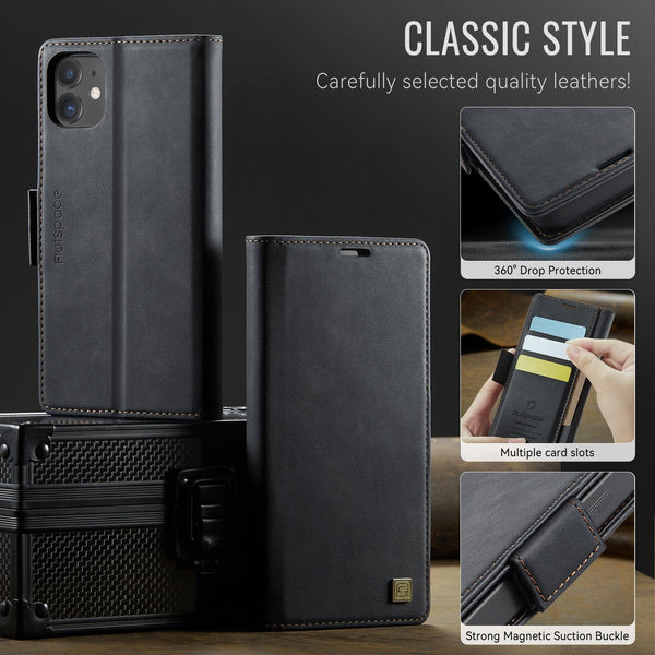 For iPhone 11 AutSpace A11 Side Buckle MagSafe Magnetic RFID Phone Leather Case(Black)
