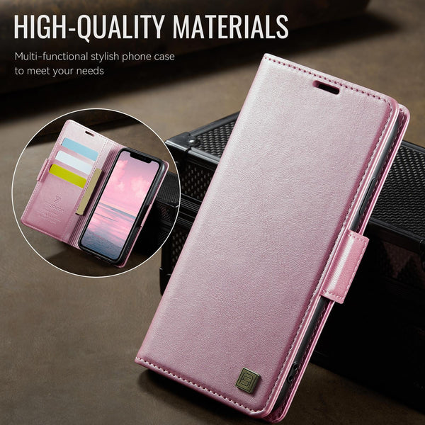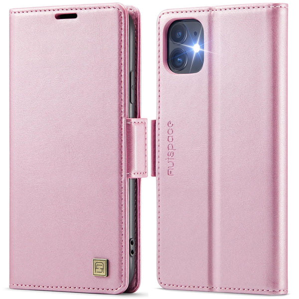 For iPhone 11 AutSpace A11 Side Buckle MagSafe Magnetic RFID Phone Leather Case(Rose Gold)