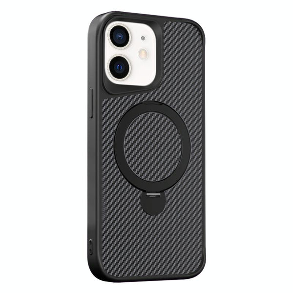 For iPhone 11 Carbon Fiber Texture 360 MagSafe Holder Phone Case(Black)