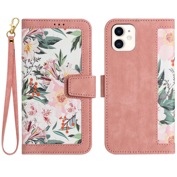For iPhone 11 Floral Pattern Leather Phone Case with Lanyard(Pink)
