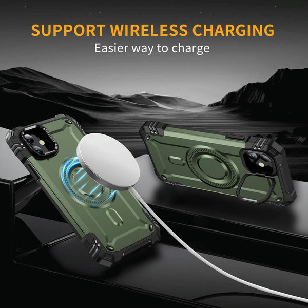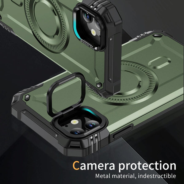 For iPhone 11 Lens Holder MagSafe Phone Case(Army Green)