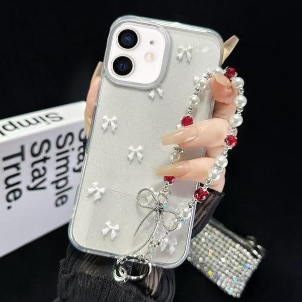 For iPhone 11 Little Fresh Bow Bracelet Chain TPU Phone Case(White)