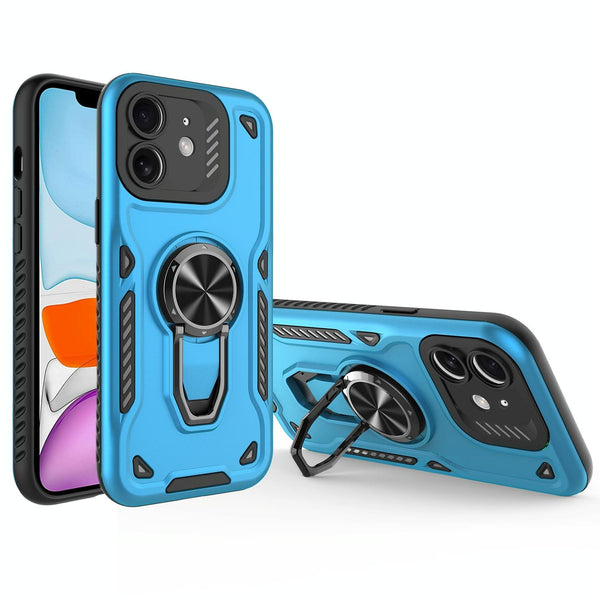 For iPhone 11 Metal Rotating Bracket TPU + PC Magnetic Phone Case(Blue)