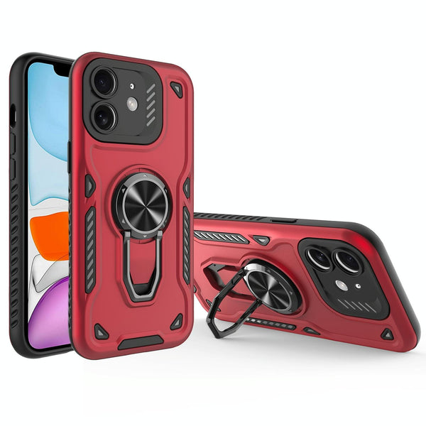 For iPhone 11 Metal Rotating Bracket TPU + PC Magnetic Phone Case(Red)
