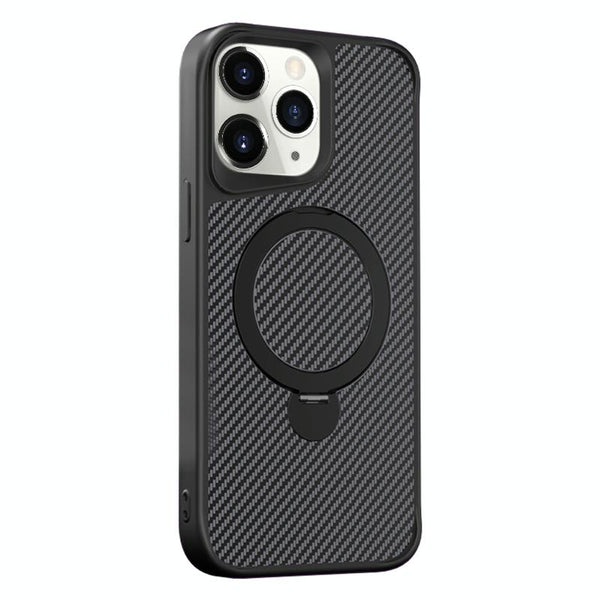 For iPhone 11 Pro Carbon Fiber Texture 360 MagSafe Holder Phone Case(Black)
