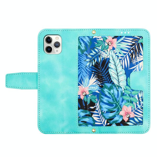 For iPhone 11 Pro Floral Pattern Leather Phone Case with Lanyard(Green)