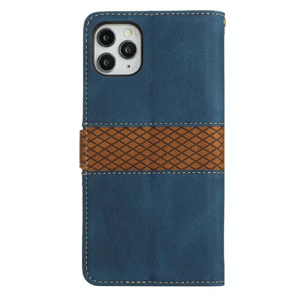 For iPhone 11 Pro Grid Stitching Leather Phone Case with Lanyard(Blue)
