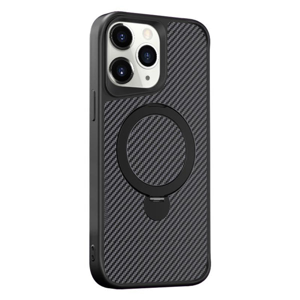 For iPhone 11 Pro Max Carbon Fiber Texture 360 MagSafe Holder Phone Case(Black)