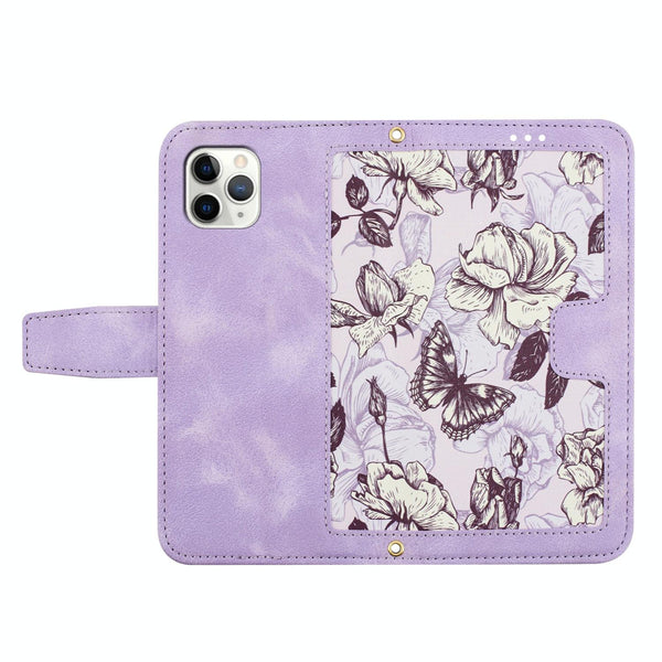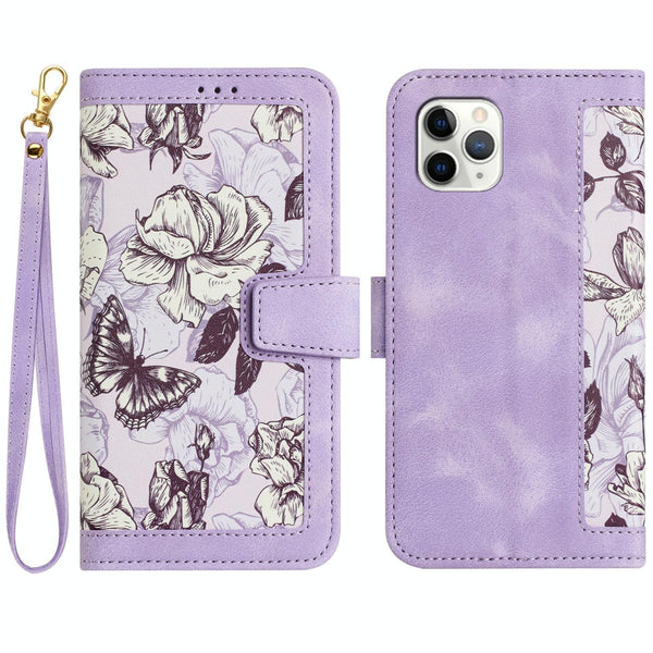 For iPhone 11 Pro Max Floral Pattern Leather Phone Case with Lanyard(Light Purple)