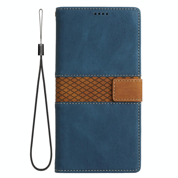 For iPhone 11 Pro Max Grid Stitching Leather Phone Case with Lanyard(Blue)