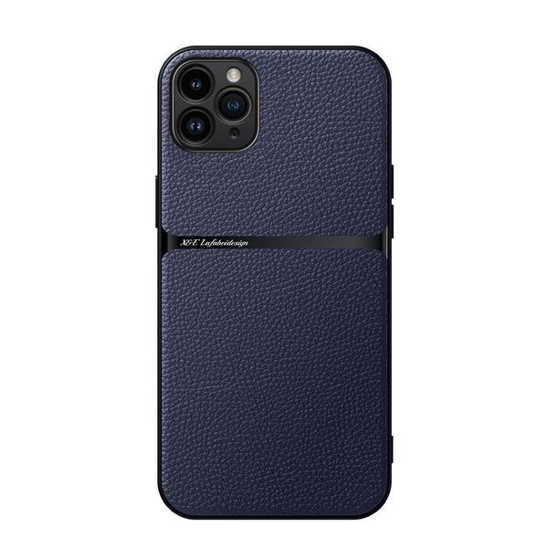 For iPhone 11 Pro Max Litchi Leather Magnetic Full Coverage Shockproof Phone Case(Navy Blue)