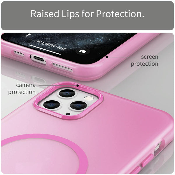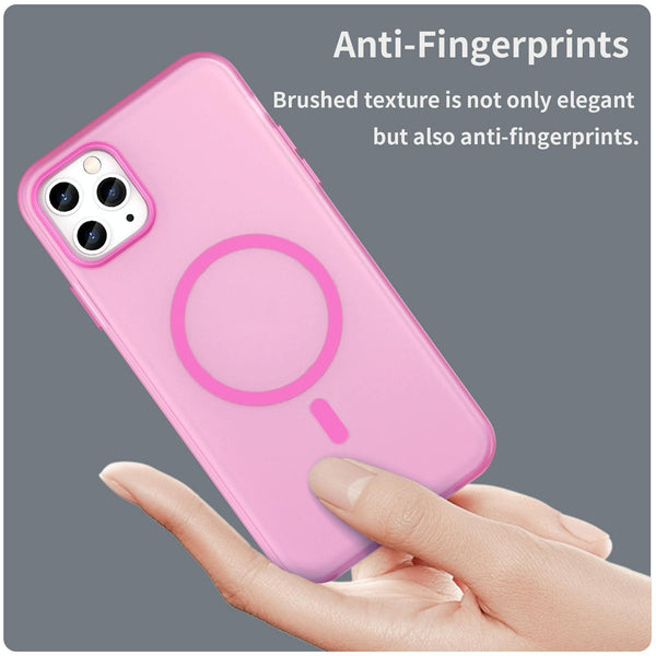 For iPhone 11 Pro Max MagSafe Frosted Translucent TPU + PC Full Coverage Phone Case(Pink)