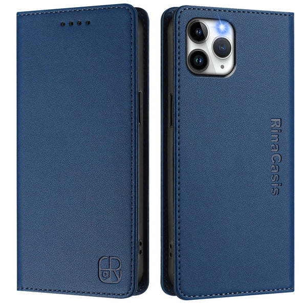 For iPhone 11 Pro Max RC01 Dual-Folded Magnetic Suction RFID Leather Phone Case(Dark Blue)