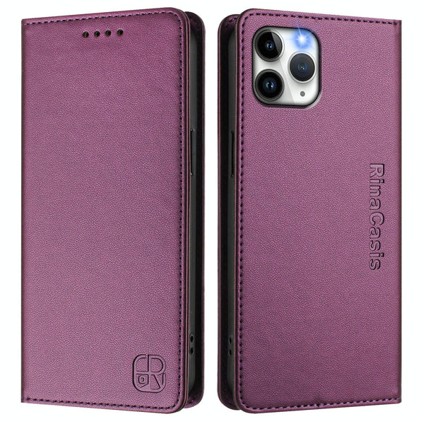 For iPhone 11 Pro Max RC01 Dual-Folded Magnetic Suction RFID Leather Phone Case(Violet)