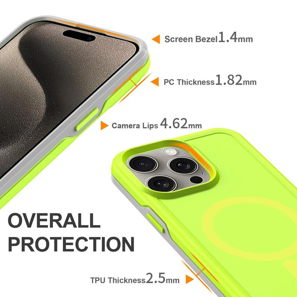 For iPhone 11 Pro Max Shockproof MagSafe Armor PC Hybrid TPU Phone Case(Fluorescent Green+Gray)
