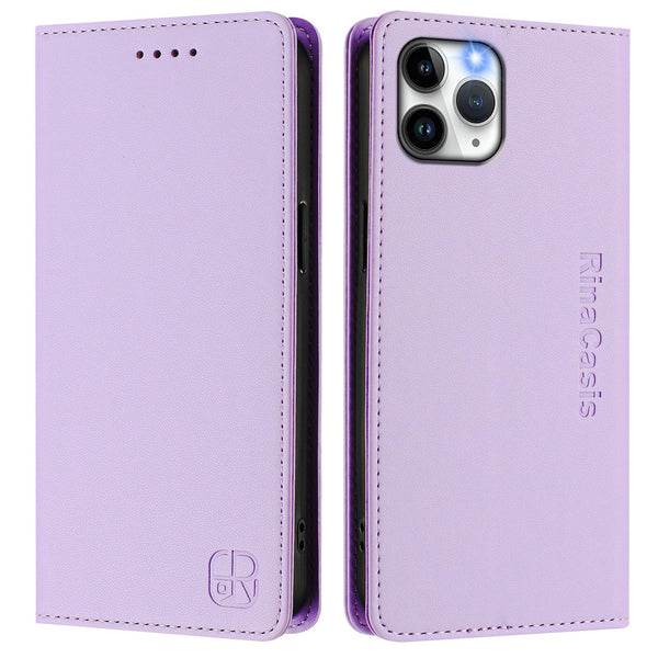 For iPhone 11 Pro RC01 Dual-Folded Magnetic Suction RFID Leather Phone Case(Light Purple)