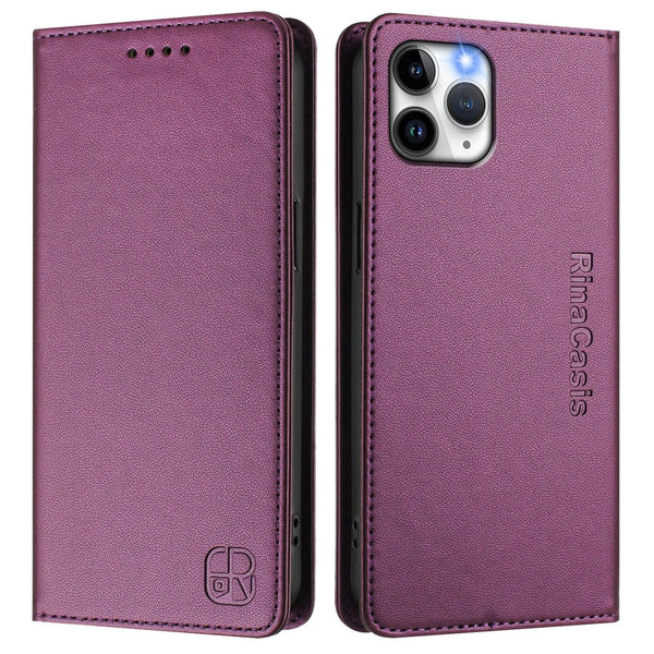 For iPhone 11 Pro RC01 Dual-Folded Magnetic Suction RFID Leather Phone Case(Violet)