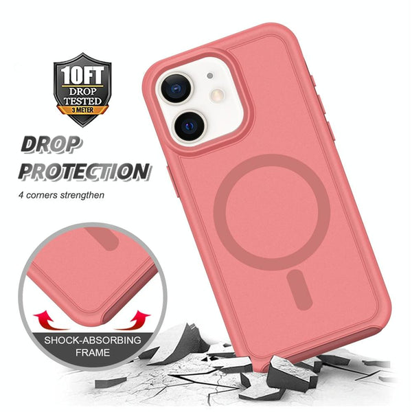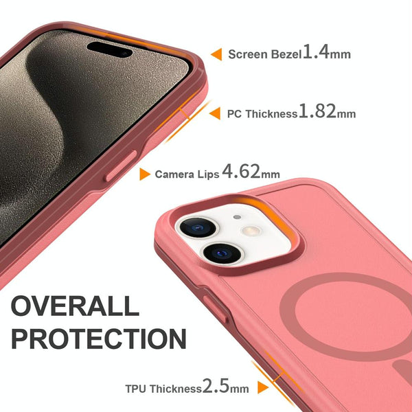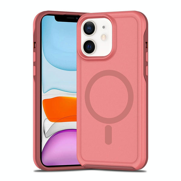 For iPhone 11 Shockproof MagSafe Armor PC Hybrid TPU Phone Case(Dark Pink+Maroon)