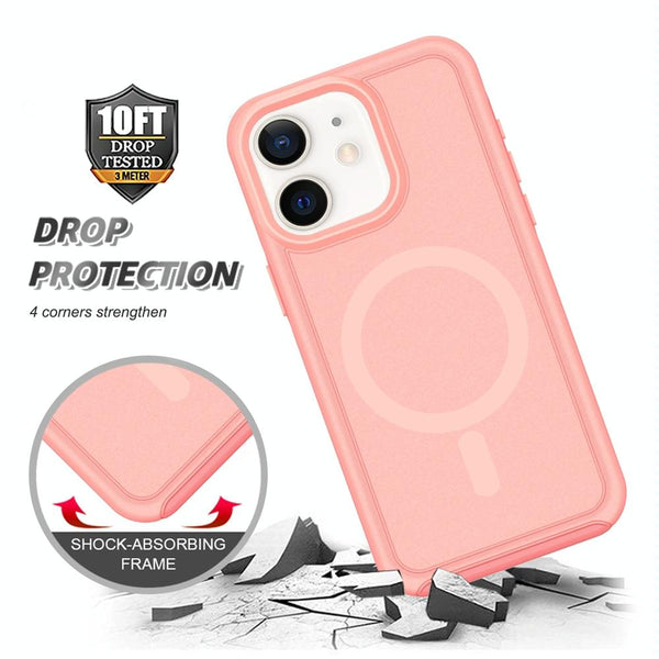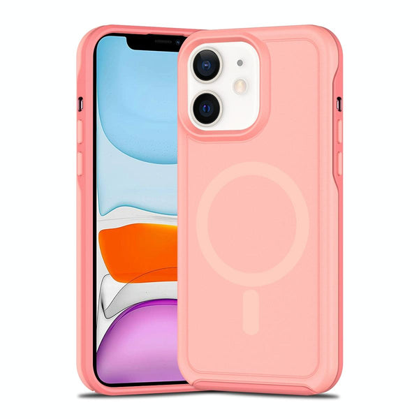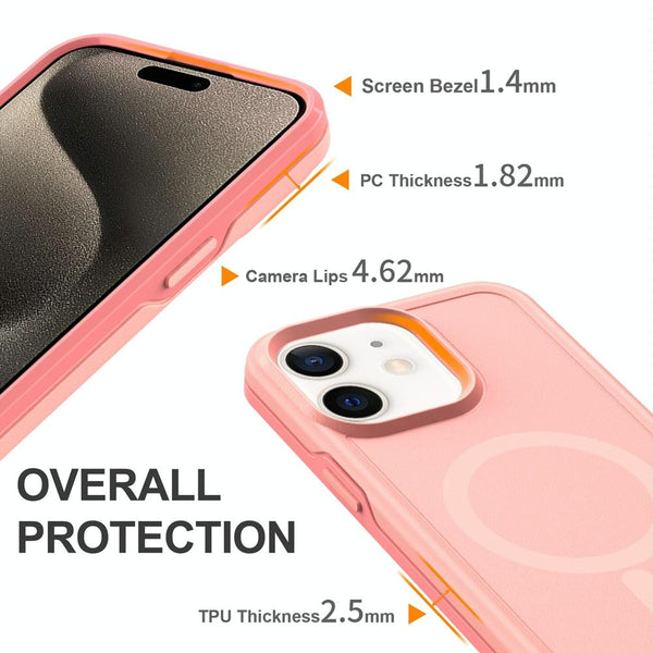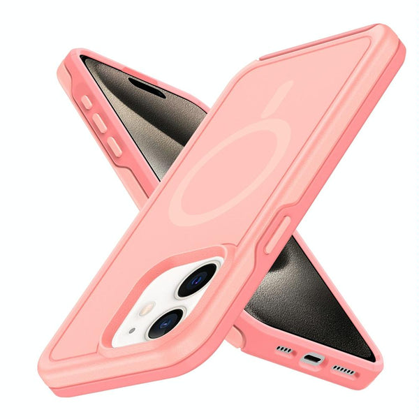 For iPhone 11 Shockproof MagSafe Armor PC Hybrid TPU Phone Case(Light Pink+Coral Red)