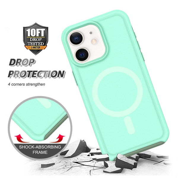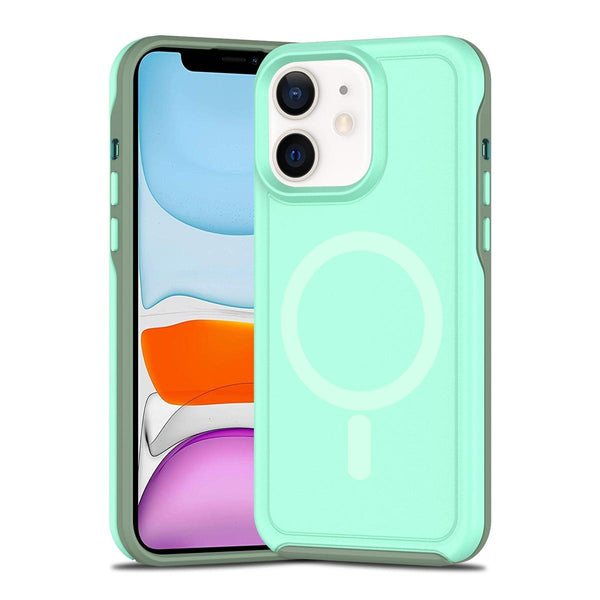 For iPhone 11 Shockproof MagSafe Armor PC Hybrid TPU Phone Case(Mint Green+Grayish Green)