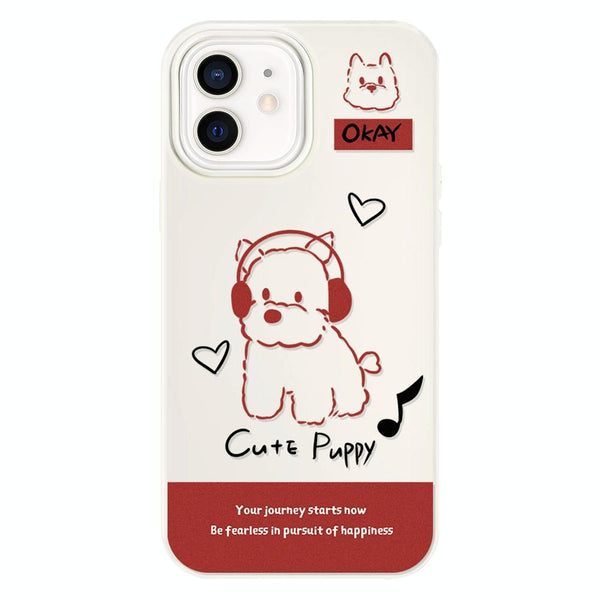 For iPhone 11 Skin Feeling Jelly TPU Hybrid PC Phone Case(Earphones Dog White)
