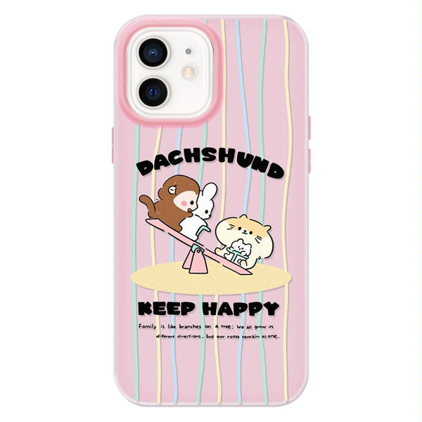 For iPhone 11 Skin Feeling Jelly TPU Hybrid PC Phone Case(Seesaw Animal Pink)