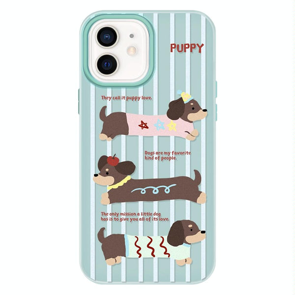 For iPhone 11 Skin Feeling Jelly TPU Hybrid PC Phone Case(Striped Dachshund Light Green)