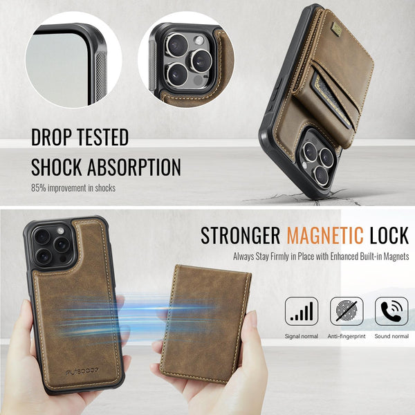 For iPhone 12 / 12 Pro AutSpace A12 MagSafe Magnetic RFID Card Bag Phone Case(Coffee)