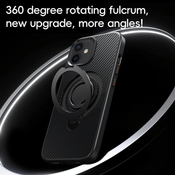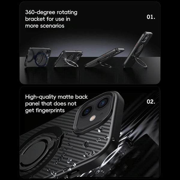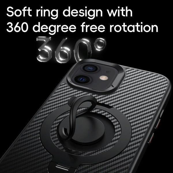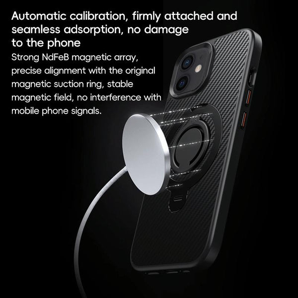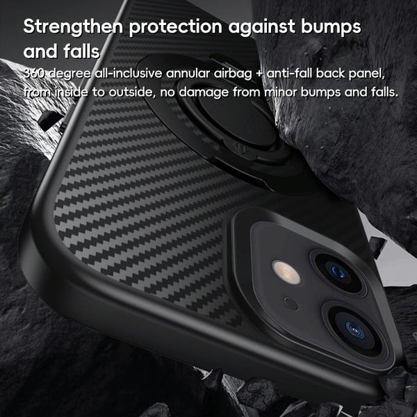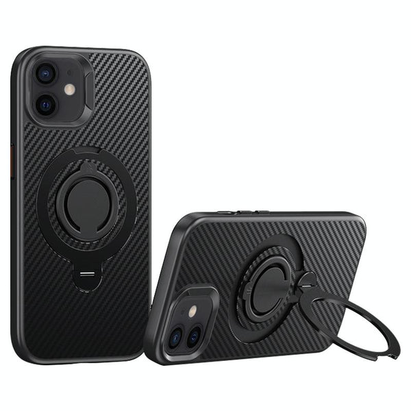 For iPhone 12 / 12 Pro Carbon Fiber MagSafe Phone Case with 360 Degree Rotating Holder(Black)