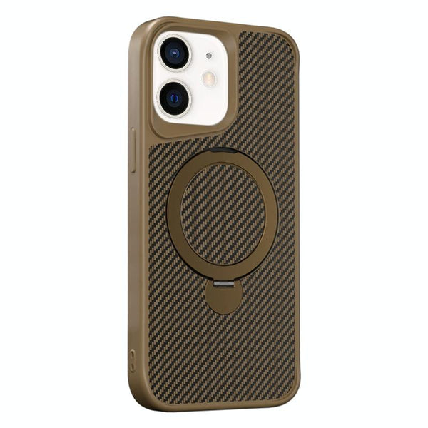 For iPhone 12 / 12 Pro Carbon Fiber Texture 360 MagSafe Holder Phone Case(Desert Gold)