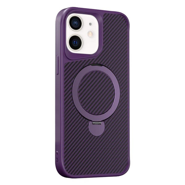 For iPhone 12 / 12 Pro Carbon Fiber Texture 360 MagSafe Holder Phone Case(Purple)