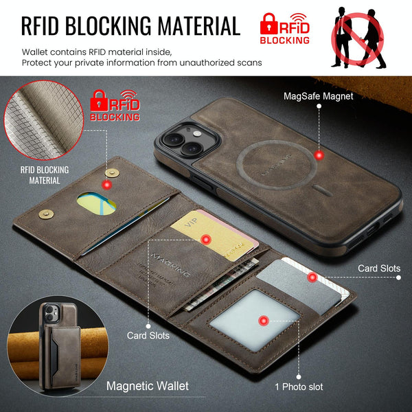For iPhone 12 / 12 Pro DG.MING MAGKING-K2 Series MagSafe RFID Card Bag Detachable Phone Case(Coffee)