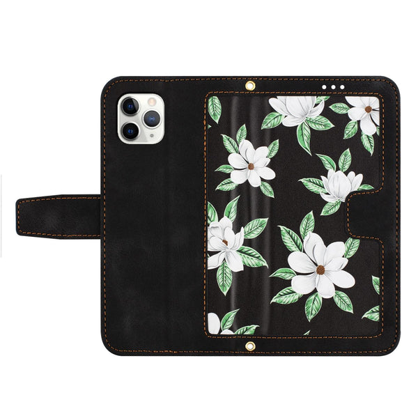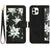 For iPhone 12 / 12 Pro Floral Pattern Leather Phone Case with Lanyard(Black)