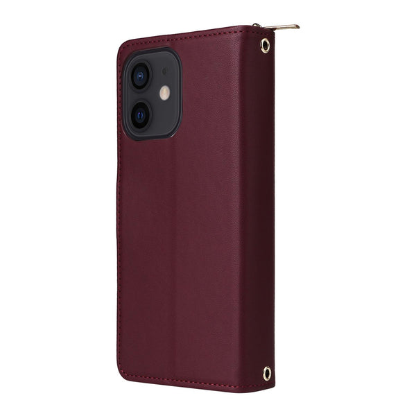 For iPhone 12 / 12 Pro Nine-card Slots Zipper Wallet Bag Leather Phone Case(Wine Red)