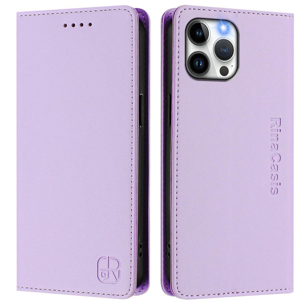 For iPhone 12 / 12 Pro RC01 Dual-Folded Magnetic Suction RFID Leather Phone Case(Light Purple)