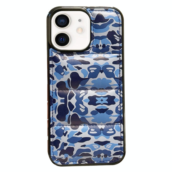 For iPhone 12 Camouflage Eiderdown Airbag Phone Case(Blue-B)