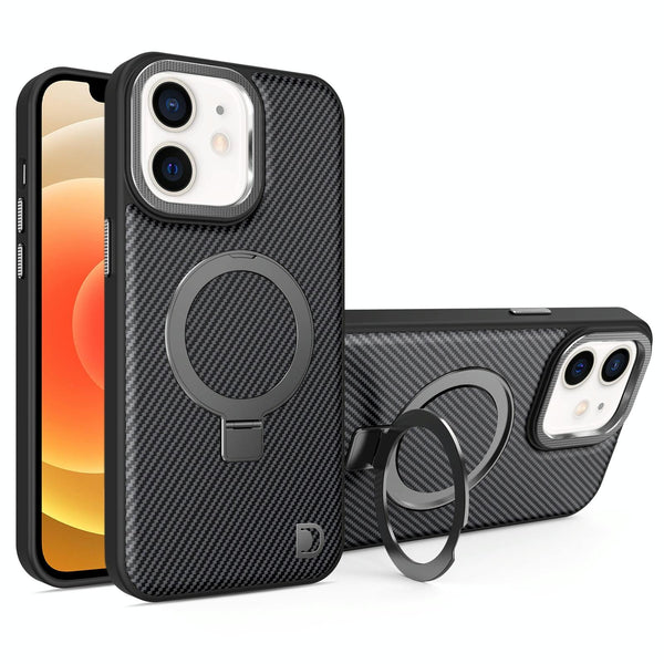 For iPhone 12 Carbon Fiber MagSafe Holder Phone Case(Black)