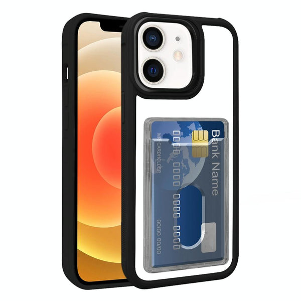 For iPhone 12 Electroplated Card Bag Acrylic Hybrid TPU Phone Case(Black)