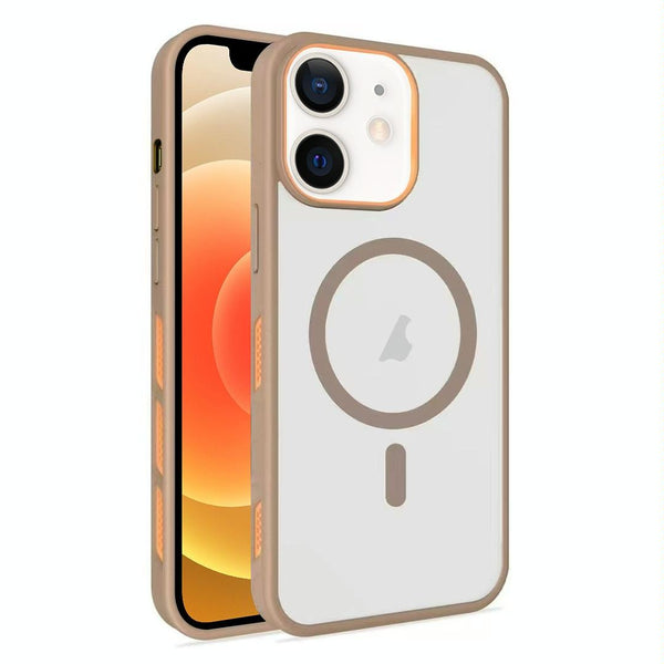 For iPhone 12 Frosted Translucent Side Ice Fog Cooling MagSafe Phone Case(Khaki)