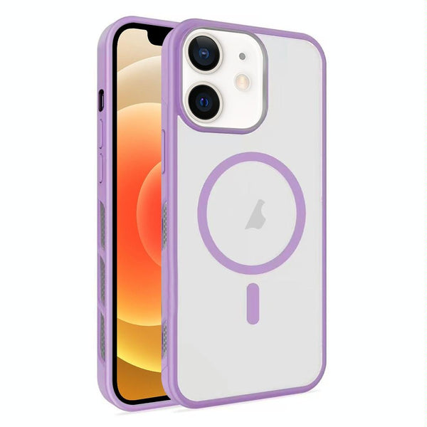 For iPhone 12 Frosted Translucent Side Ice Fog Cooling MagSafe Phone Case(Light Purple)