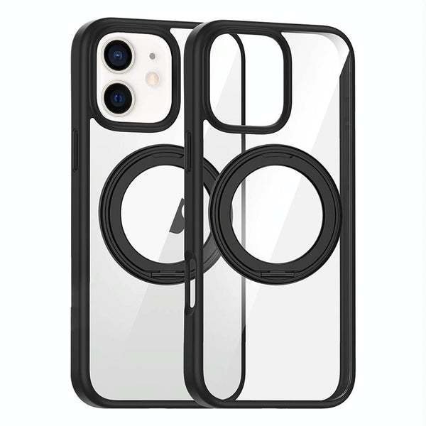 For iPhone 12 High Transparency 360 Degree Rotating Holder MagSafe Phone Case(Black)