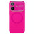 For iPhone 12 Large Window Acrylic Glass Lens MagSafe Silicone Phone Case(Rose Red)