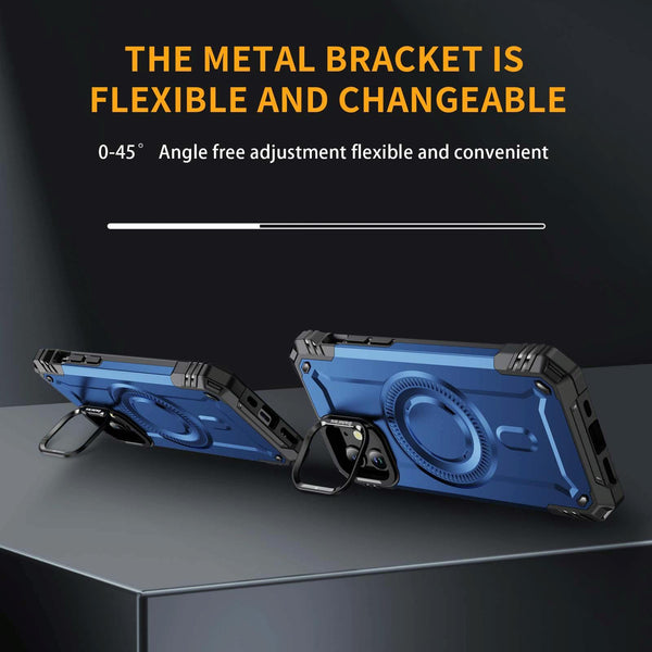 For iPhone 12 Lens Holder MagSafe Phone Case(Blue)